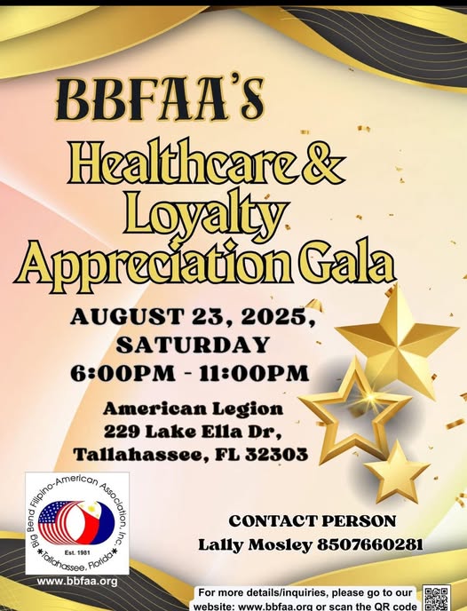 The BBFAA extends its heartfelt gratitude to all the generous sponsors who made the unforgettable Leyte Dance Performance possible on June 7, 2025, at the Lee Hall Auditorium. This rare and magical event showcased the traditional Filipino dances of the renowned Leyte Dance Theatre (LDT) of the Jess de Paz Foundation. A special highlight was the presentation of a Proclamation from Tallahassee Mayor John Dailey to the members of LDT, recognizing their cultural contribution to the city of Tallahassee. We deeply thank the host families for their warm hospitality and for opening their homes to the dancers during their stay. Our sincere appreciation also goes to the dedicated volunteers, supportive attendees, and our venue partner, Florida A&M University. Salamat to the amazing intermission performers and visiting Fil-Am groups from Pensacola and Bay County, as well as Tallahassee’s own Folklorico Filipiniana, BBFAA Cultural Group, and Grady Jefferson/TSC. Lastly, we are grateful for the beautiful memories captured through the lens of Master Capcap Aparente. Maraming salamat po!
